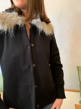 Cárdigan con cuello de piel