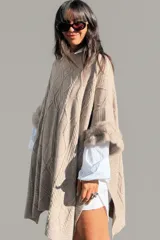 Poncho Italiano Puños de Piel en Amarté | Trendo