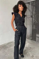 Mono de Lino con Plisados en ANA LIVNI | Trendo