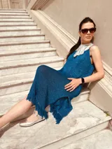 Vestido de fiesta azul metálico en Antonia Wool Wear | Trendo
