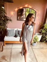 Vestido Plateado con Espalda Bordada en Antonia Wool Wear | Trendo