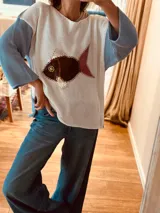 Sweater de algodón con aplique de cuero en Antonia Wool Wear | Trendo