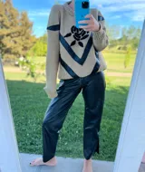 Sweater de Lana con Cuero y Bordado