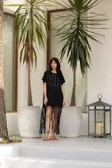 Vestido de algodón con tachas y flecos