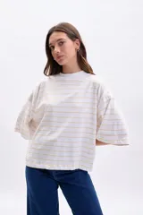 Remera Manga 3/4 Cuello Alto Rayada