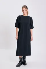 Vestido Manga Globo con Pespunte