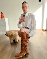 Bota tejana de cuero con flecos