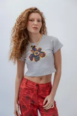 Remera con aplique de flor