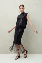 Falda Larga de Lentejuelas con Flecos en Daniel Cassin | Trendo