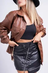 Minifalda de cuero con cremalleras