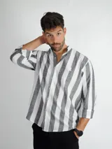 Camisa Raya Ancha Cuello Mao en Duxon | Trendo
