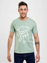 Remera Algodón Estampada Cuello V