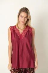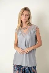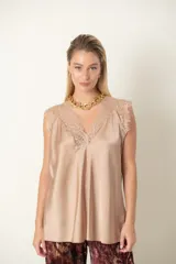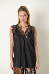 Blusa de satén con encaje