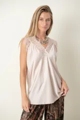 Blusa de satén con encaje en Gladys T | Trendo