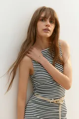 Vestido midi de punto a rayas