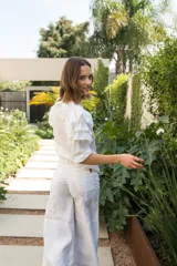 Pantalón Wide Tiro Medio Lino en Irene | Trendo