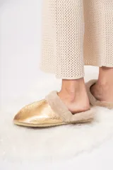 Pantuflas de cuero ovino doradas
