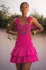 Vestido corto con bordado floral en Karech Elixir | Trendo