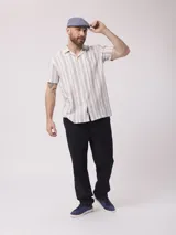 Camisa Rayada de Lino y Poliéster