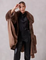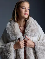 Ruana con aplique de piel sintética