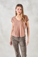 Remera Escote V Algodón Flamé