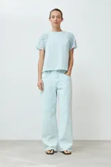 Remera con mangas de broderie