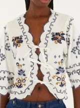 Blusa Bordada con Lazos