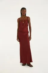 Falda Larga Satinada con Encaje en Magma | Trendo