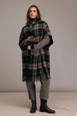 Tapado Capa a Cuadros con Flecos en Magma | Trendo