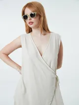 Vestido cruzado de lino y viscosa