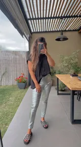 Calza metalizada tiro alto en María Gorlero | Trendo