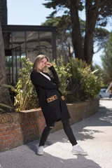 Saco largo con bolsillos de cuero
