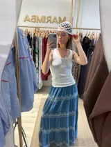 Falda de jean bordada en Marimba | Trendo