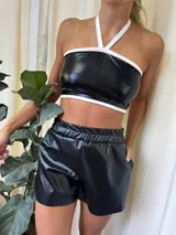 Top de cuerina en MONBLACK | Trendo