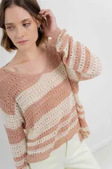 Sweater calado a rayas en Peach | Trendo