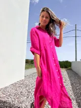 Vestido Camisero de Lino Fucsia en Pepita Dash | Trendo
