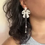 Aros colgantes con lazo y perlas en PICÚ | Trendo