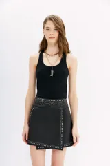 Falda Cruzada de Cuero con Tachas