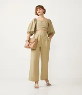Blusa Cropped Tricolina Manga Abullonada