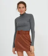 Blusa de punto acanalado cuello alto en Renner | Trendo