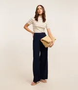 Blusa Rib con Cuello Mediano y Estampa Rayada
