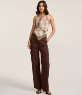 Top halter con encaje y estampado en Renner | Trendo