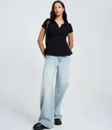 Blusa Peplum en Rib con Cuello Polo en Renner | Trendo