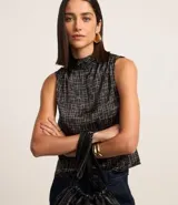 Blusa Satinada con Cuello Alto Drapeado en Renner | Trendo