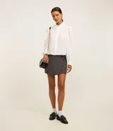 Camisa en Crepé con Botón Diferenciado y Manga Abullonada