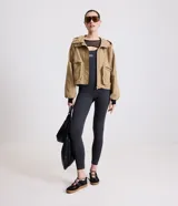 Campera en Sarga con Cuello alto y Bolsillos Delanteros