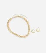 Conjunto Collar y Aros Dorados en Renner | Trendo