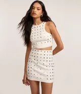 Pollera corta ajustada con tachuelas