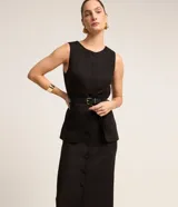 Pollera midi de lino con botones