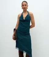 Pollera midi satinada con encaje